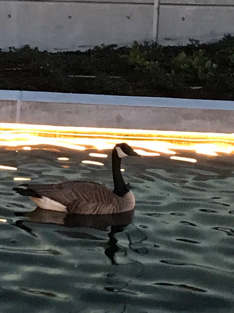 - the Canada goose pretending to be a swan decoy in the pool