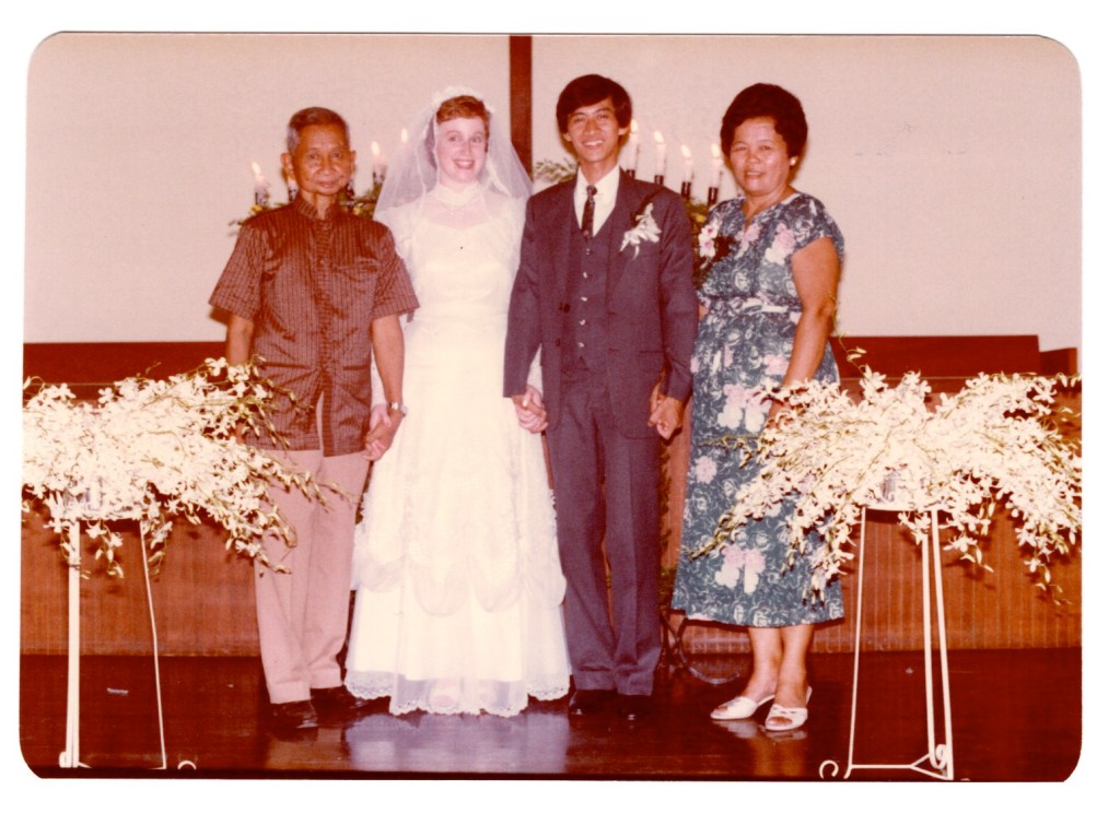 His patience is what I remember most about him. When I first arrived in Thailand, preparing to marry his son, he would spend time with me, trying to teach me to converse in Thai. One particular day, shortly after he came to stay with in Bangkok for a visit, my father-in-law was teaching me to say the word for “market”. (ตลาด). He would say it with the correct tone, and I would reply with a questioning tone. Patiently he repeated himself at least 30 times, until I caught on. From that day I realized how important it is to say Thai words not only with the correct consonants and vowels but with the correct tone. It is a tonal language, with 5 tones (low, rising, middle, high and falling) which often cause troubles with new learners.