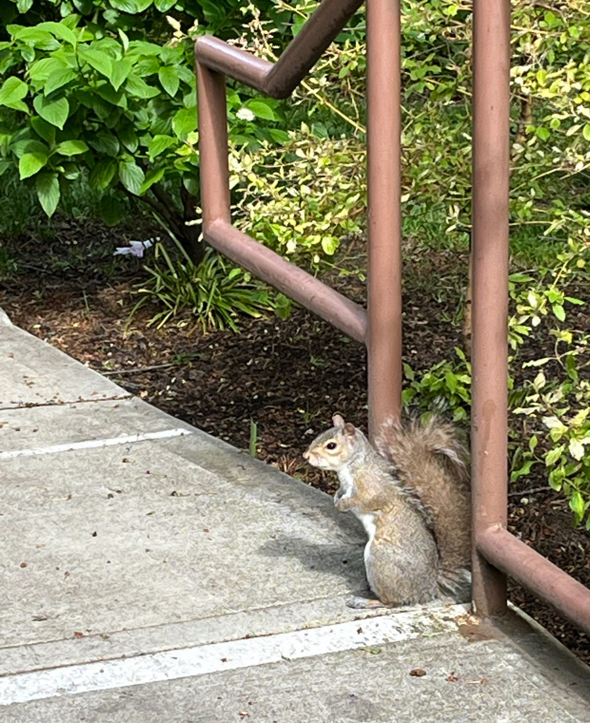 This second squirrel was trying to beg for food, but at the same time seemed to prefer to be invisible. It didn’t make eye contact, but I’m sure that if I had any kind of food available it would have inched closer.