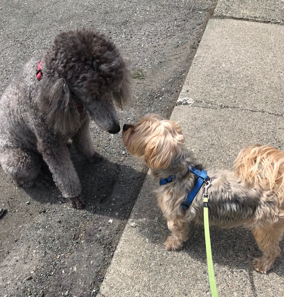 Or maybe Toffee was just too tired to complain about a larger dog crossing his path.