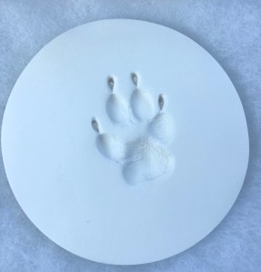 When Toffee died I ordered his paw print in plaster as a keep-sake. It helped soothe the pain, and made me feel slightly less guilty. Making the decision to let him go quickly in order to avoid days of having him suffer alone was a decision wracked with guilt. I didn’t want to play God and decide the exact time that my little angel was going to die.