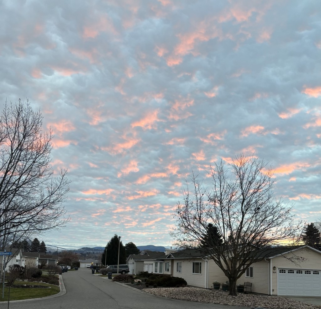 For me most mornings begin sitting in a comfy chair savouring a cup of strong coffee, looking east toward Black Mountain. It is here where I plan my day, and often chat with my children and friends. For the fall and winter months I am always up before sunrise, and love watching the change in the clouds and light as the sun rises. Some mornings the sky is especially beautiful — those mornings give me hope for a good day.