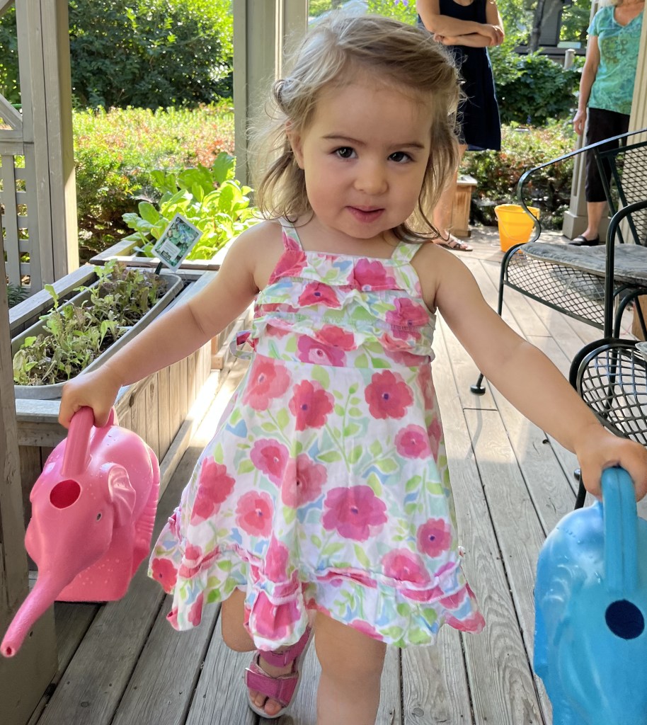 Between weddings I am spending time with another daughter and my granddaughter. We are learning to appreciate the small things in life — blowing bubbles in the backyard, coaxing a chipmunk out from the shrubs (bribing with hands full of nuts), progress on the potty training, bravery to slide down the slide, learning to play nicely with other kids.